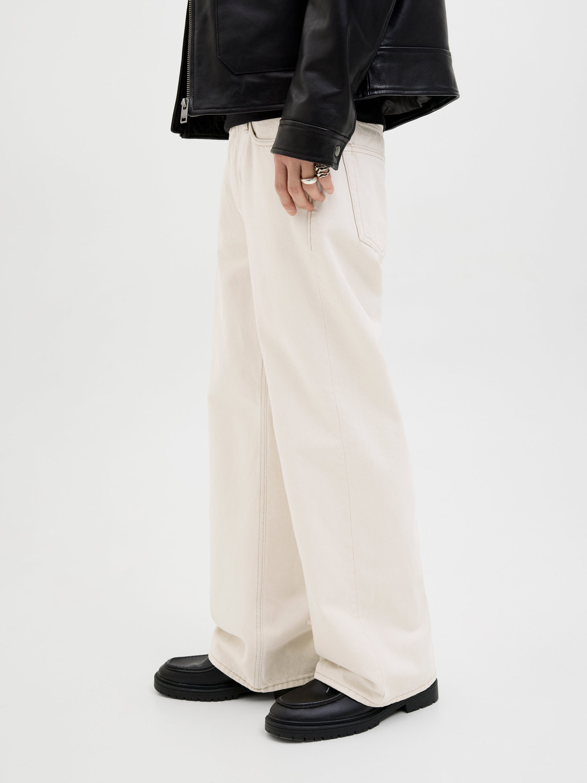 – Fit : Flared fit with a high rise, relaxed thigh, loose knee, and flared leg opening