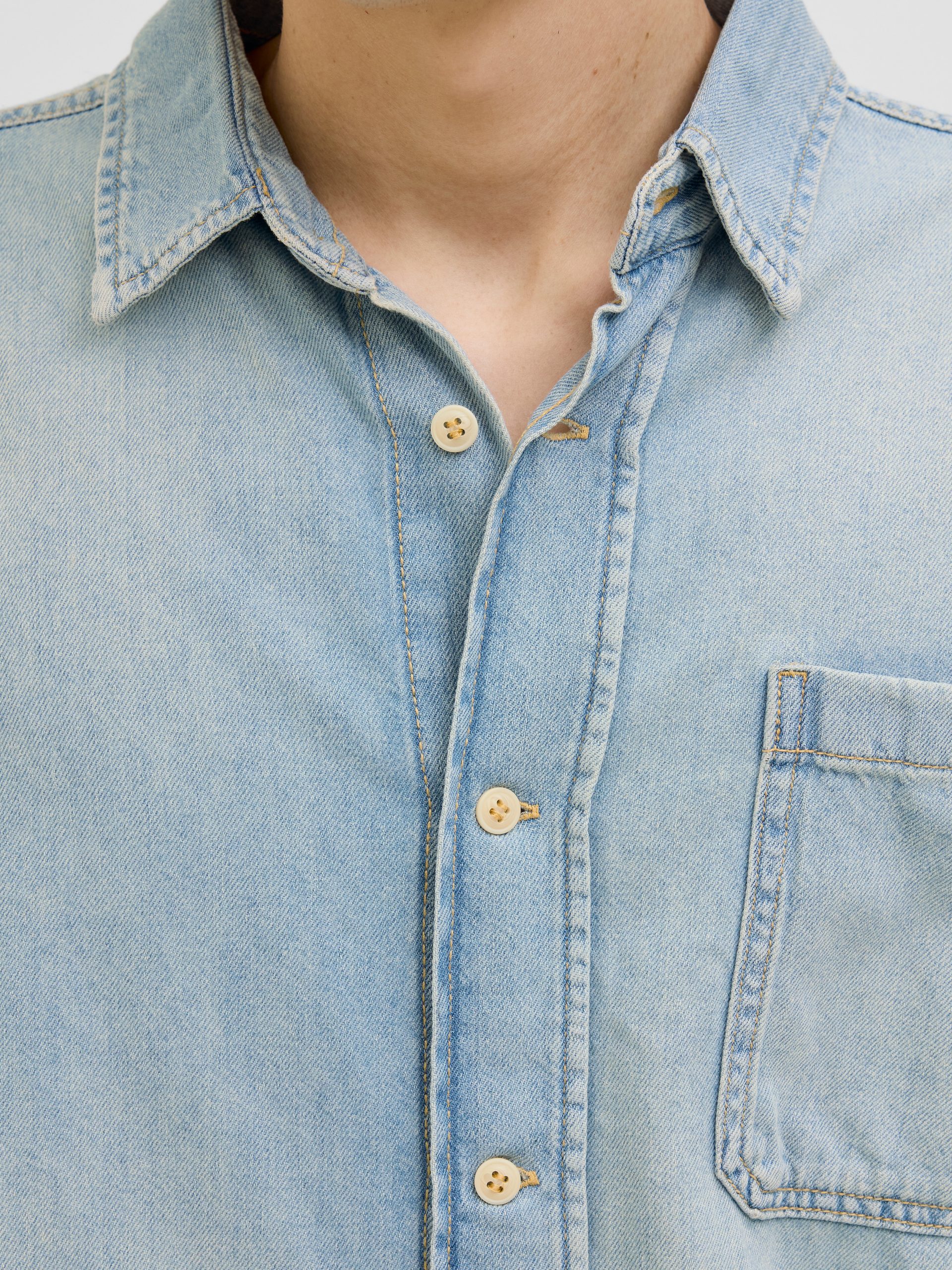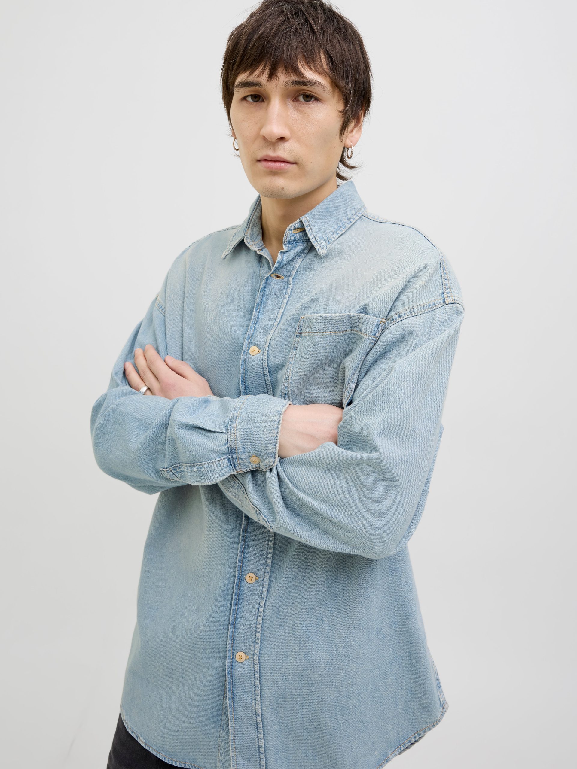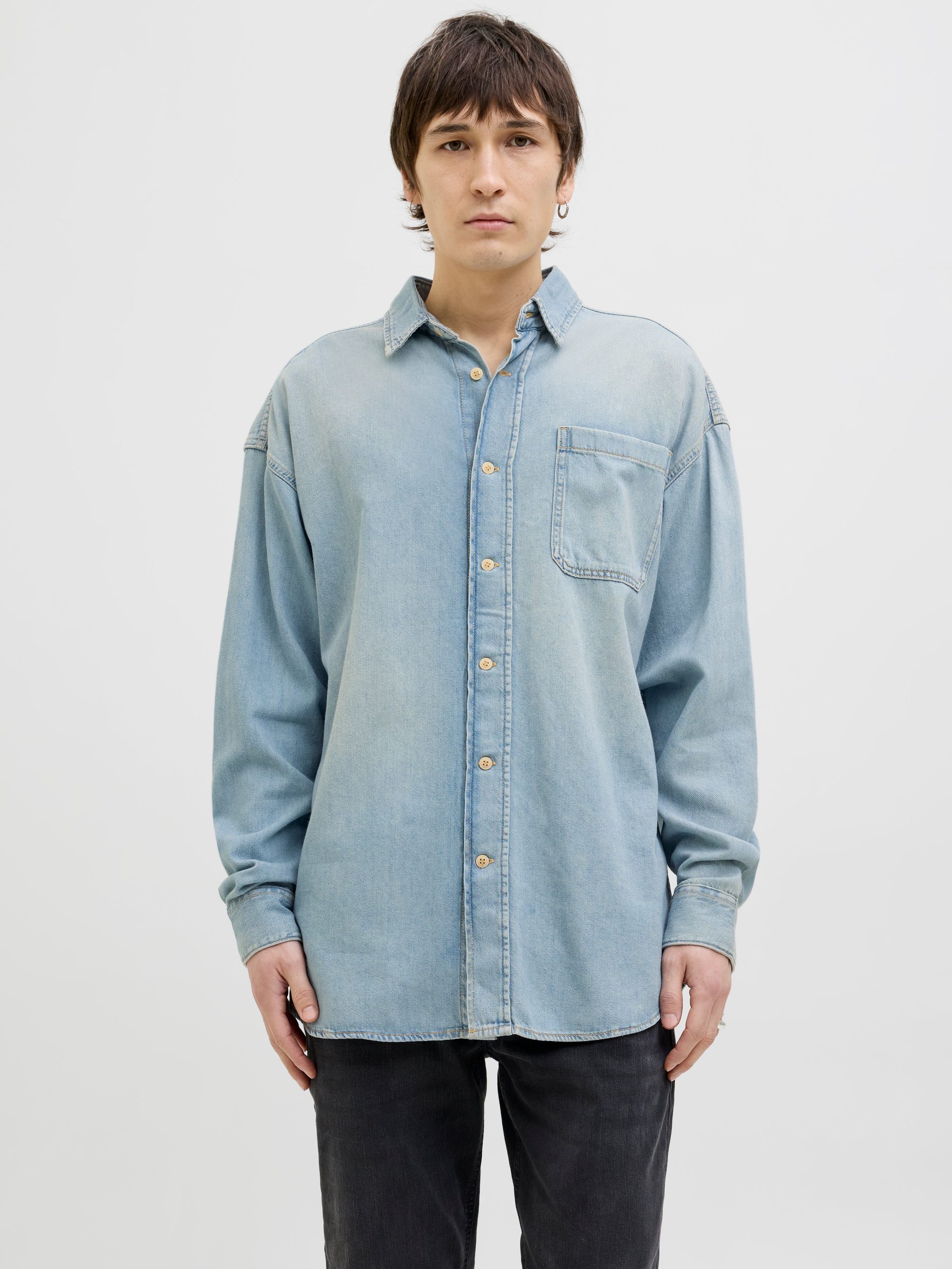 JACK & JONES Men’s Wide Fit Denim Shirt | Blue