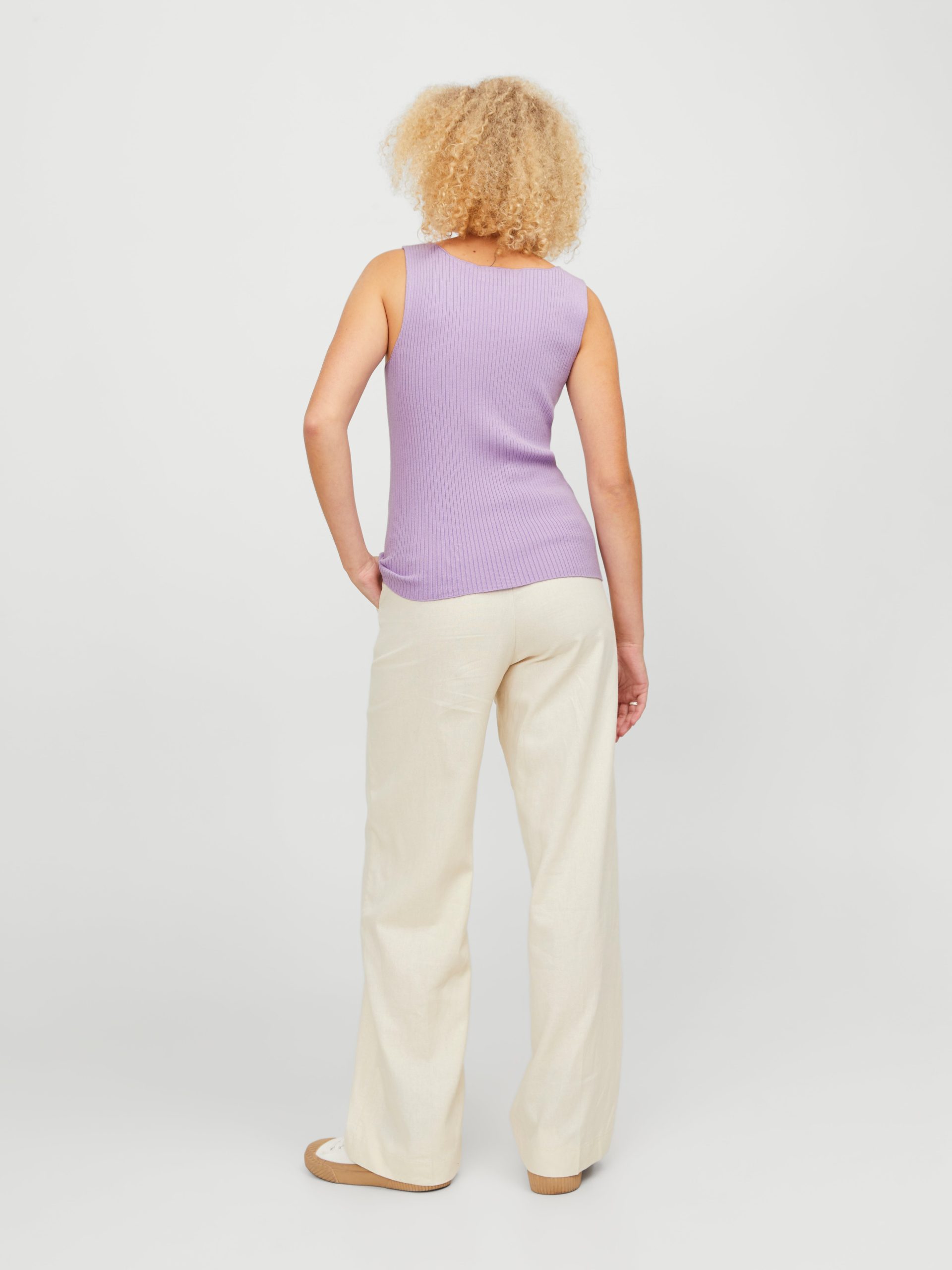 Rib knit has vertical ridges and is very stretchy for a comfortable feel.